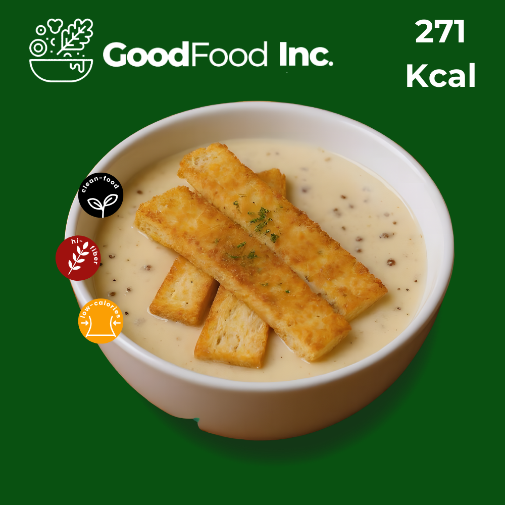 Mushroom Cream Soup With Garlic Butter Wholewheat Croutons